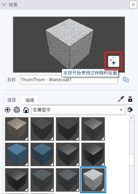 您可以从默认的材质库选择逼真材质,也可以在 3D Warehouse 模型库 查找数百种的逼真材质。